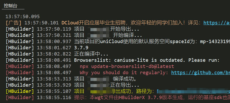 在控制台中导出成功打开文件