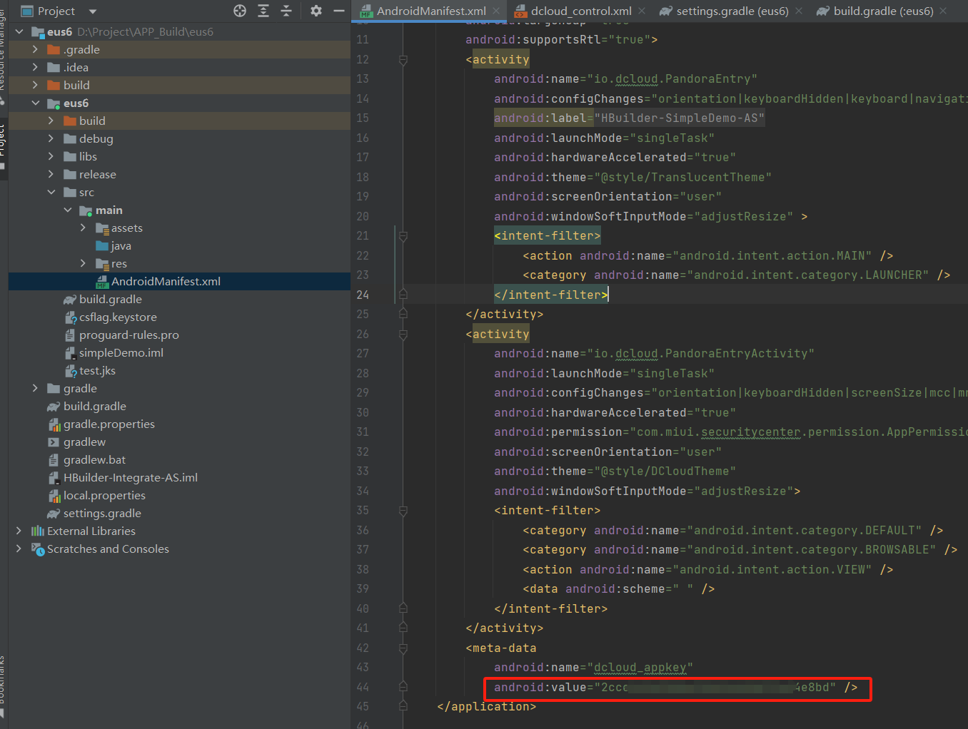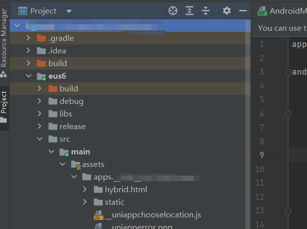 将HBuilderX导出的包替换到android studio工程apps目录下。