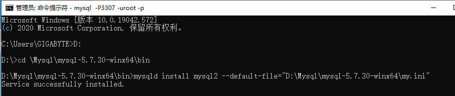 mysqld install mysql2 --default-file="D:\Mysql\mysql-5.7.30-winx64\my.ini"