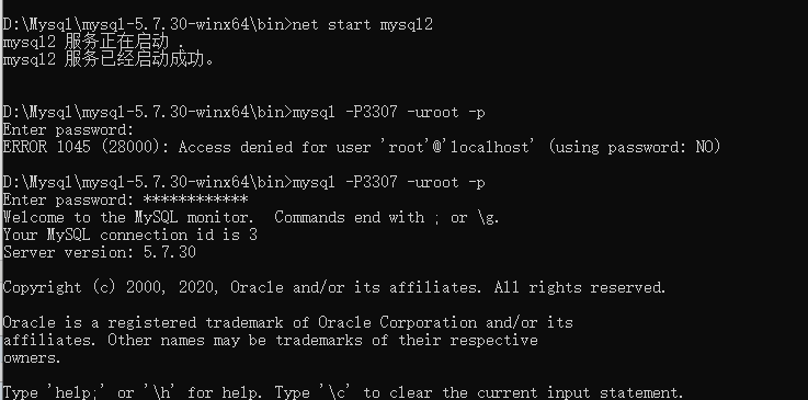 3、因为3306端口被5.5版本的mysql占用,所有5.7的使用3307