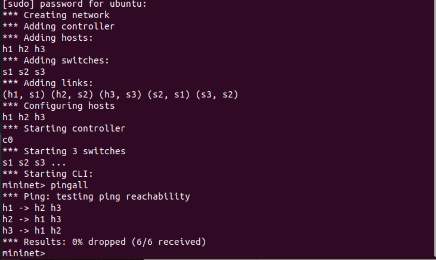 能够使用Mininet交互界面管理SDN拓扑;