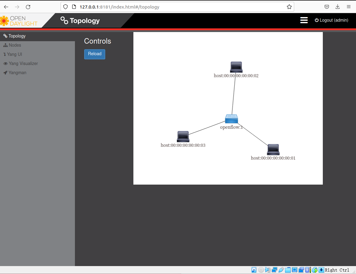 利用Mininet平台搭建下图所示网络拓扑,并连接OpenDaylight控制器;![]()