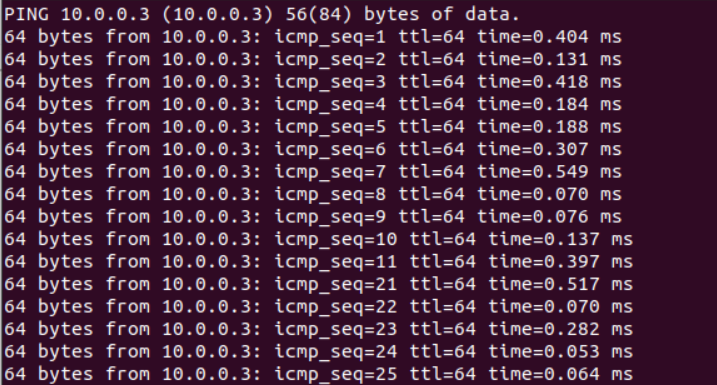 Mininet中测试ping的截图