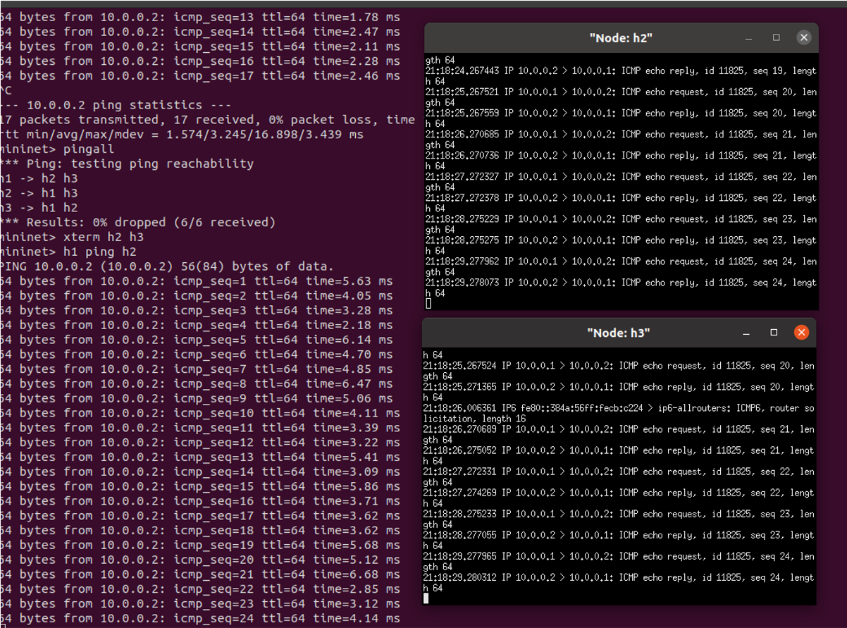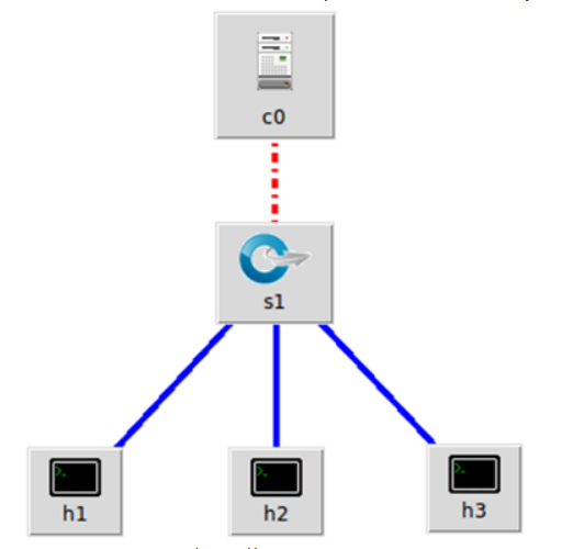 搭建下图所示SDN拓扑,协议使用Open Flow 1.0,并连接Ryu控制器。