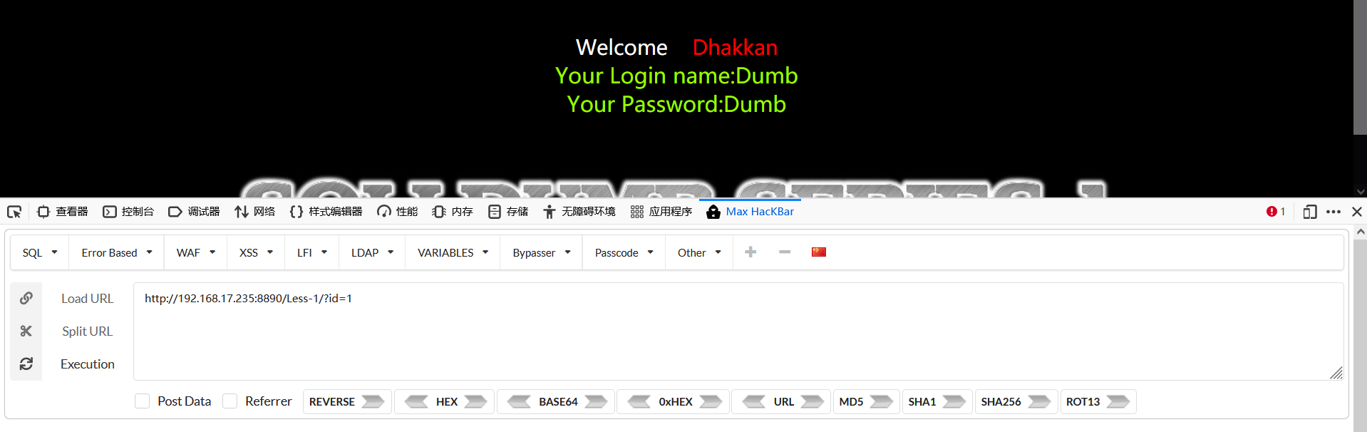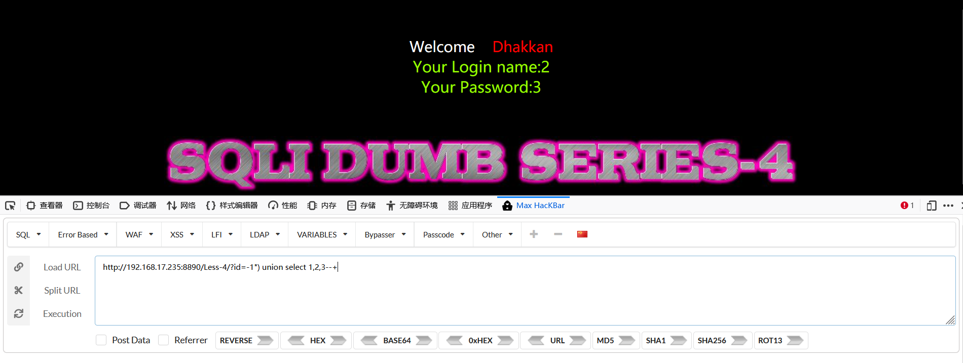 根据关卡名可以看出要求Dump into outfile来注入,可以差不多猜出来是要利用导出,可以写入一句话然后导出,通过菜刀去连接