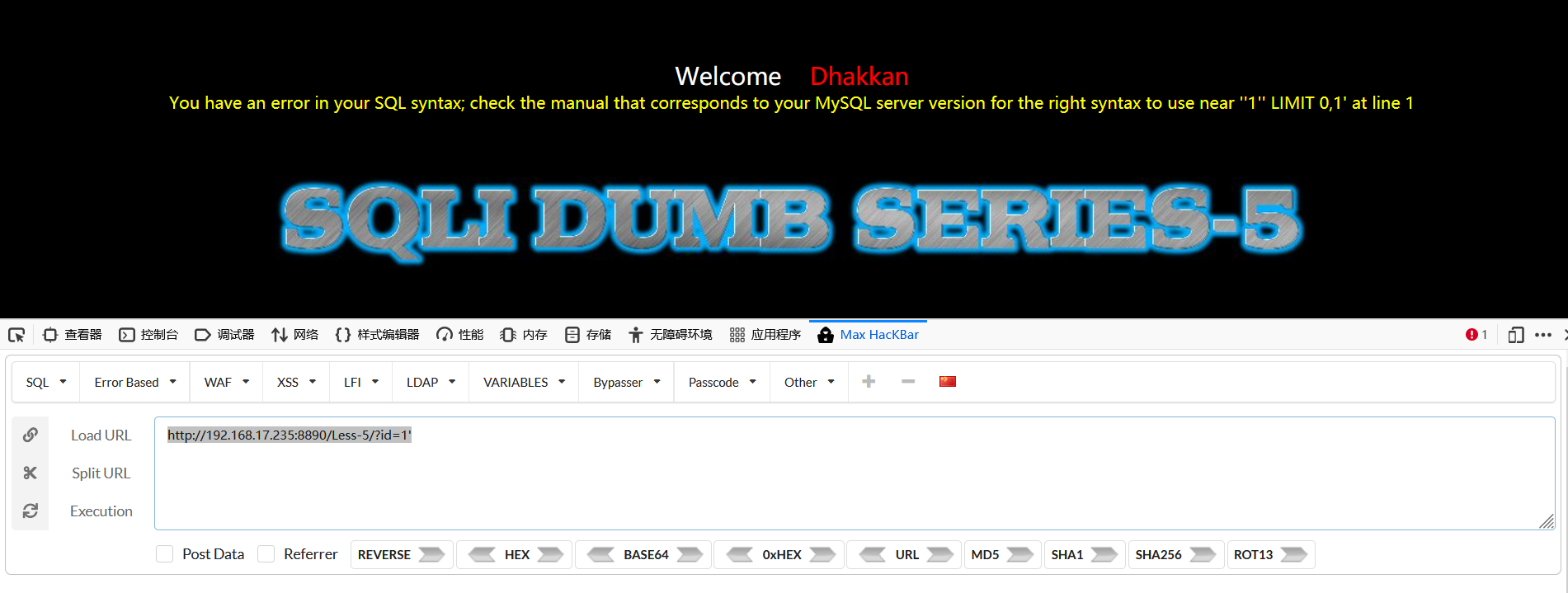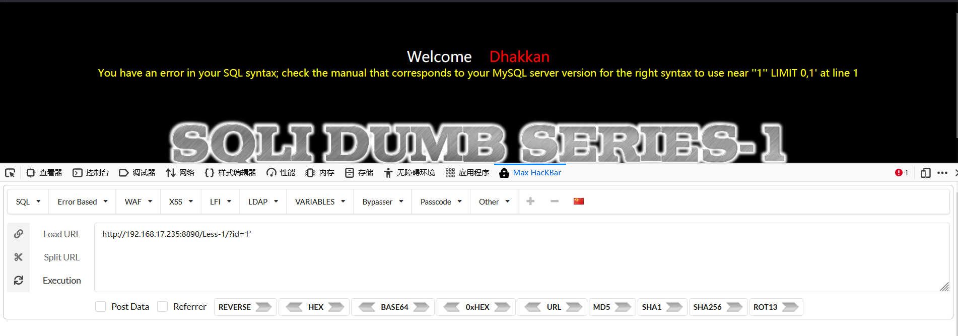 加上一个单引号,返回语句错误,,说明存在字符型注入