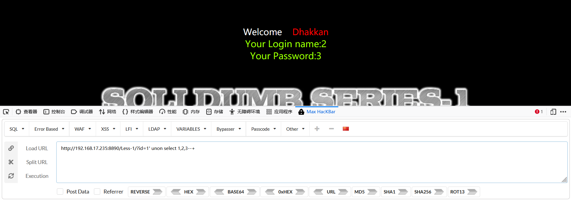 测试回显位,拼接-1‘ union select 1,2,3--+,可以看出2和3可以回显查询内容