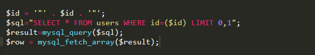 查看源码可看见,虽然在sql语句中不包括引号,但是在第一句中为id参数加上了一对双引号。