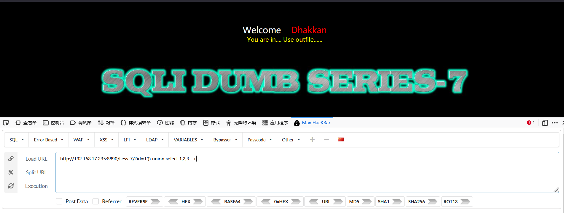 输入-1')) union select 1,2,3--+返回正常页面,还提示了使用outfile,那么基本可以断定了