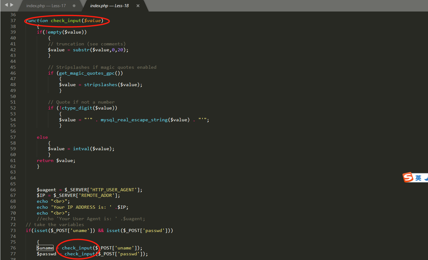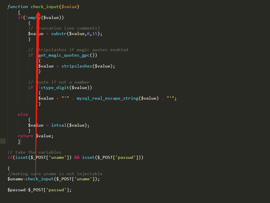 再看源码,发现uname和passwd都执行了一次数据检查函数