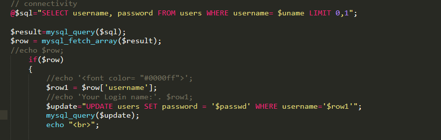 返回注入场景,这里和之前有点不同的是注入点在passwd处,看一下代码