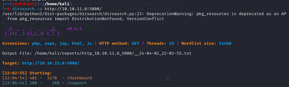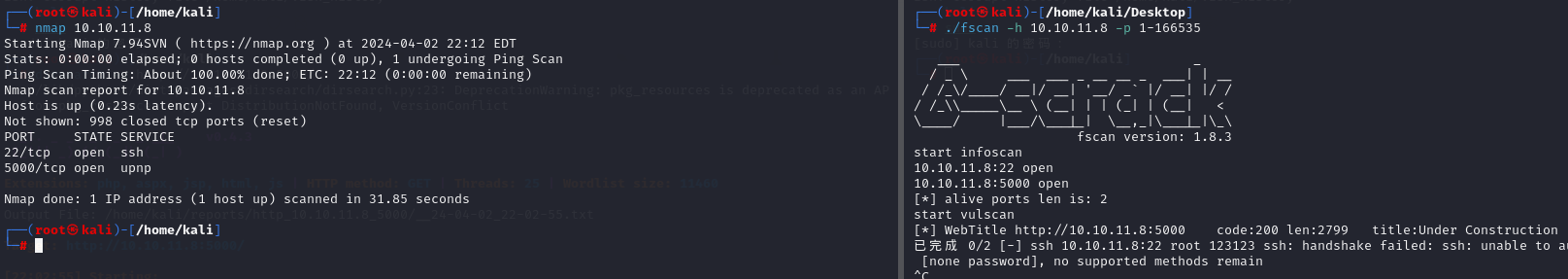 对IP进行信息收集,nmap和fscan扫描出只开了22和5000端口