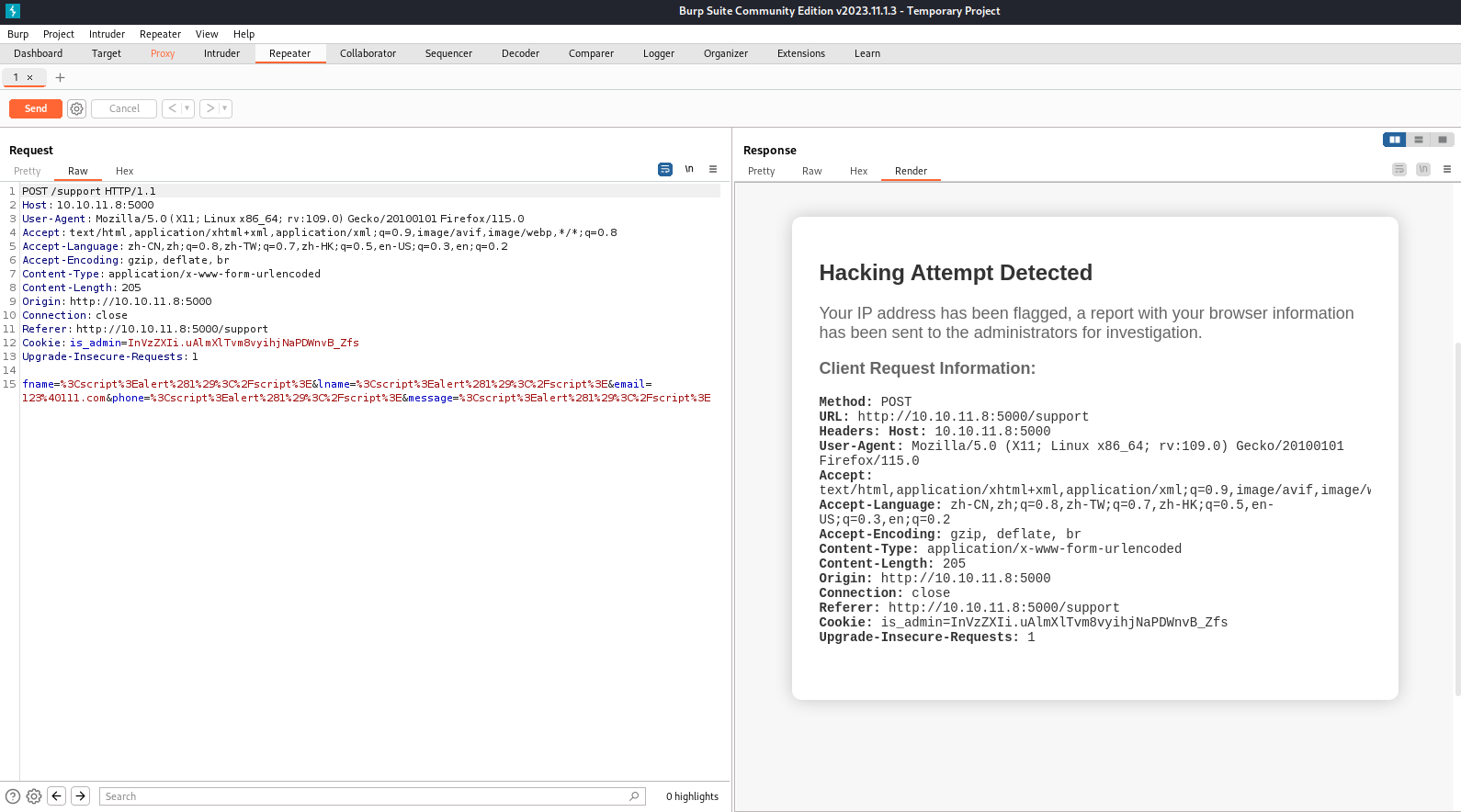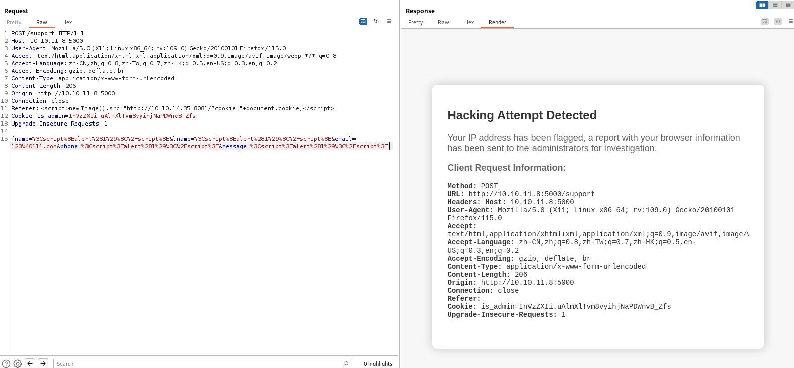 仔细观察下来cookie的值is_admin,加上waf上面写着IP已经被标胶,一份包含你浏览器信息的报告会发送给管理员