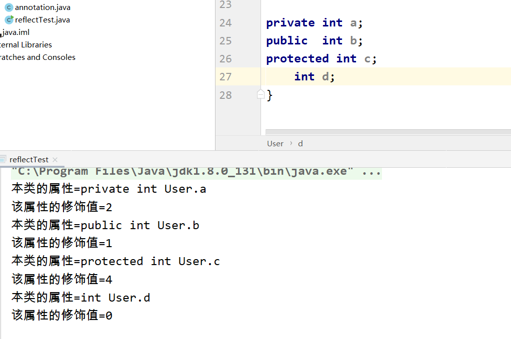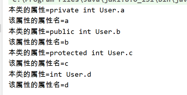 System.out.println("本类的属性="+ field + "\n该属性的修饰值="+field.getModifiers());