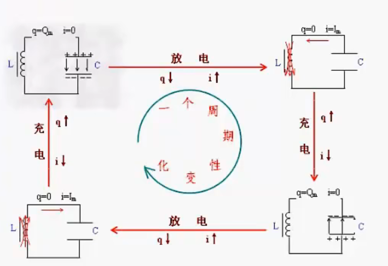 震荡:能产生大小和方向都随周期发生变化的电流叫振荡电流,能产生震荡电流的电路叫做振荡电路。其中最简单的振荡电路是LC回路