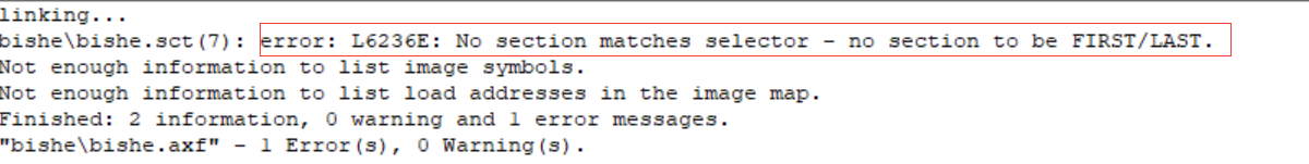 没有启动文件,编译不通过,报错No section matches selector - no section to be FIRST/LAST。