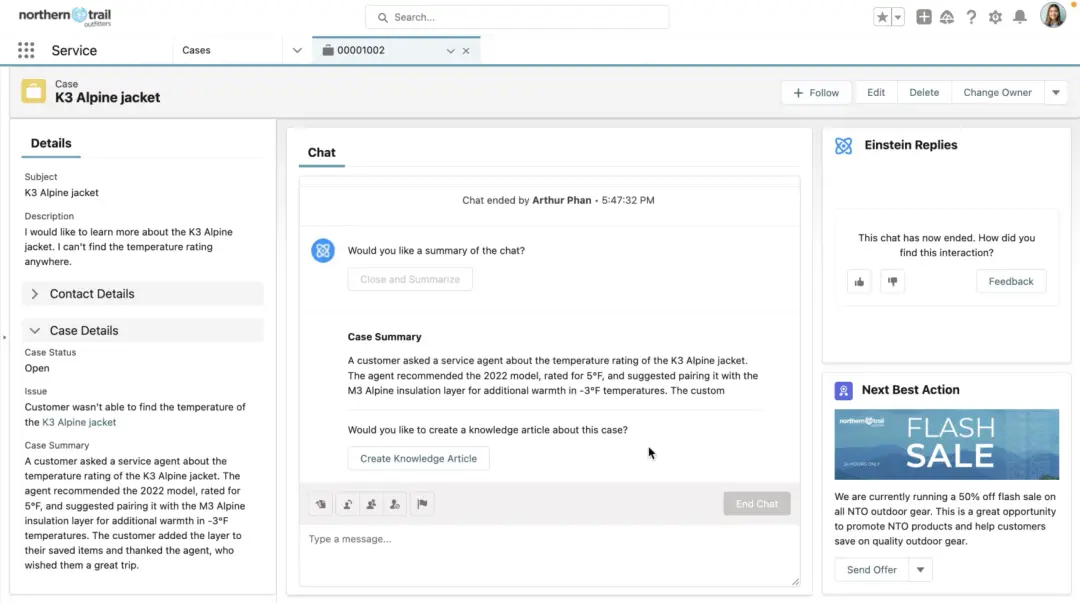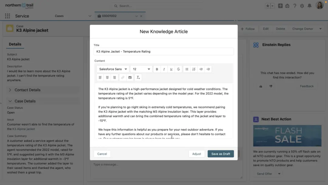 此外,Einstein还会询问座席是否需要根据聊天对话创建知识库文章,这意味着此信息可以向其他座席和客户开放。