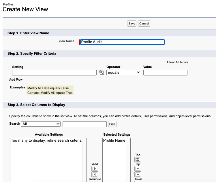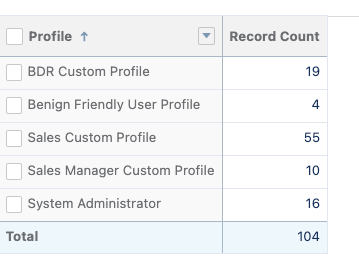 此外,简档的名称(尤其是自定义简档)并不表示该简档中包含哪些权限。因此,即使一个简档被命名为“Benign Friendly User Profile”,它也可能包含你不希望用户拥有的各种权限。