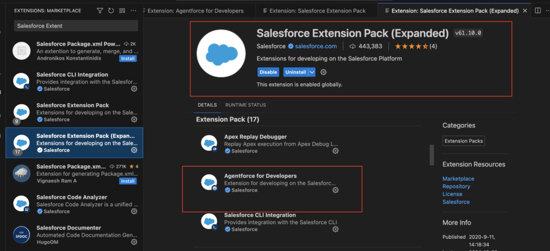 Salesforce将Agentforce for Developers描述为一款AI驱动的开发工具,可以作为Visual Studio Code(VS Code)的扩展插件使用。它基于CodeGen和xGen-Code技术构建,支持在VS Code、Open VSX市场以及Salesforce Expanded Pack中安装。