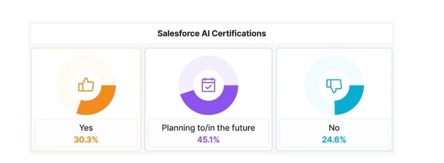 根据 SF Ben 发布的《2025年Salesforce管理员调查报告》,高达75.4%的管理员已考取AI相关认证,或计划在近期内报考。