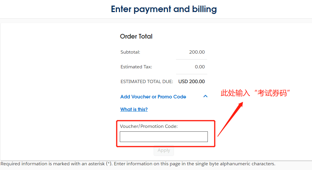 使用考试券(Voucher),即直接输入券码,系统会抵扣对应金额。