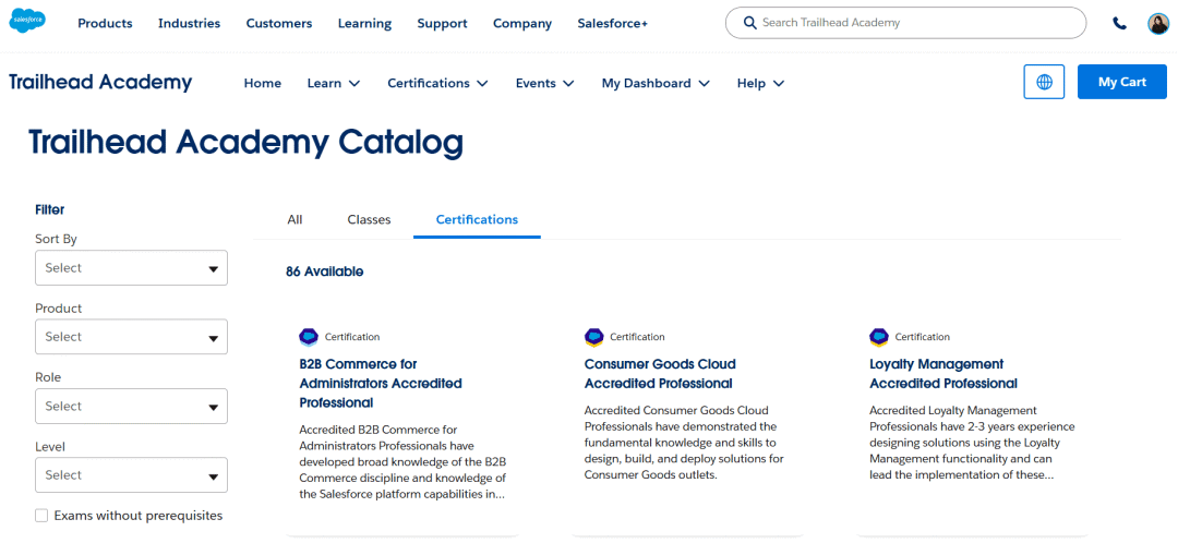注册完成后,会进入个人 Salesforce Academy 界面。