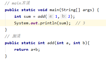 - 方法名:是方法的实际名称,方法名和参数表共同构成方法签名。