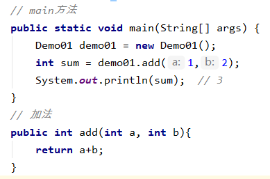 - 形式参数:在方法被调用时用于接收外界输入的数据