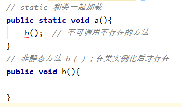 1.非静态方法可以调用静态方法,反之不行 (静态方法与类一起加载,main)