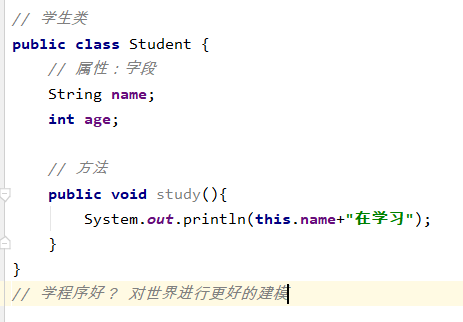 - 从认识论的角度考虑是先有对象后有类。对象,是具体的事物。类,是抽象的,是对对象的抽象
