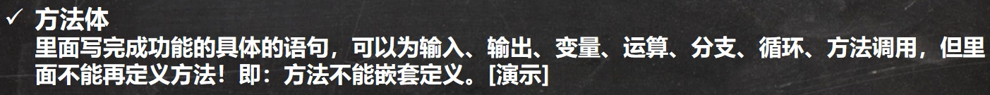 - 如果方法是void,则方法体中可以没有return语句,或者只写return