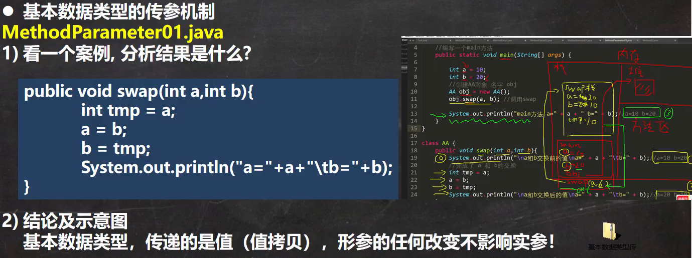 Java方法,方法调用内存分析,传参机制_韩顺平听课笔记