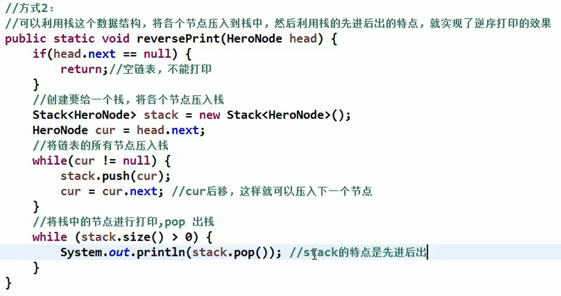 23.从尾到头打印单链表,要求方式1:反向遍历(破坏链表结构,不建议使用),方式2:Stack栈(百度面试)