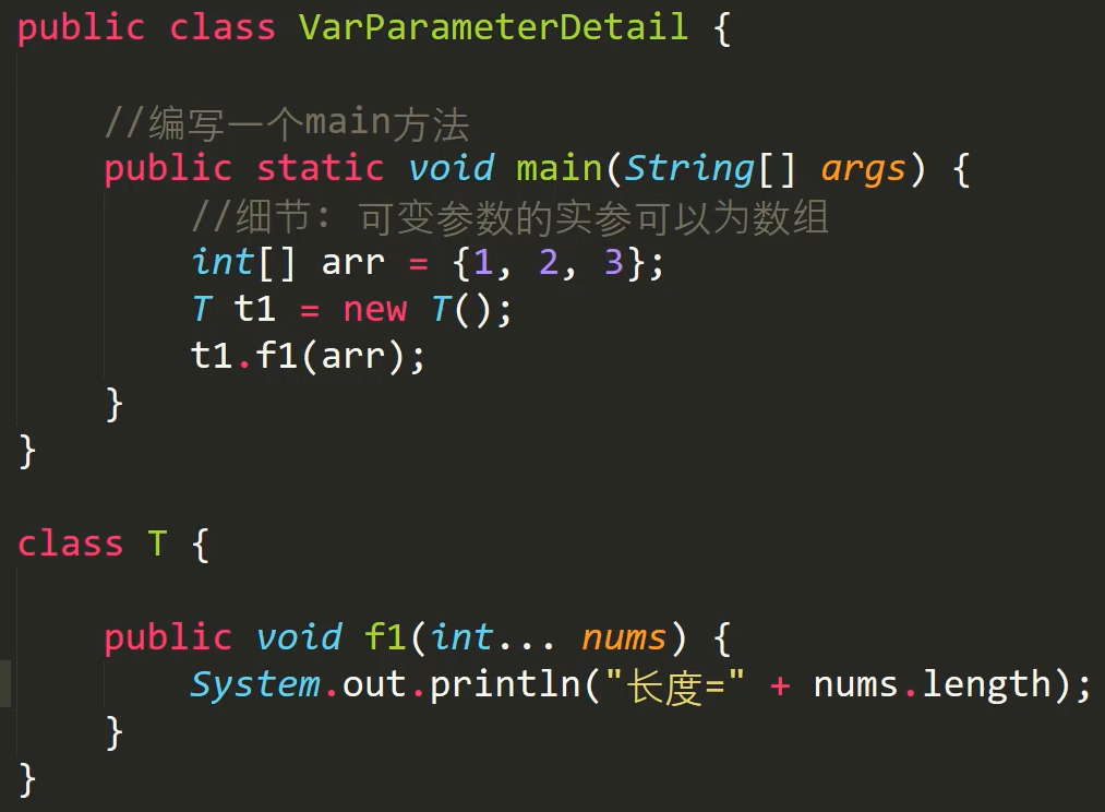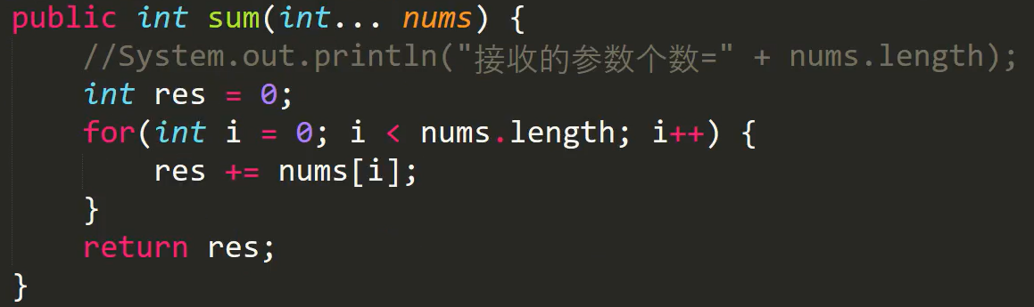 使用可变参数是,可以当作数组来使用,即nums可以当作数组
