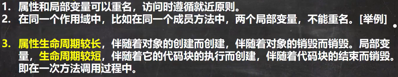 属性的生命周期较长,伴随着对象的创建而创建,伴随着对象的销毁而销毁(对象创建JVM内存分析,对象在堆中)