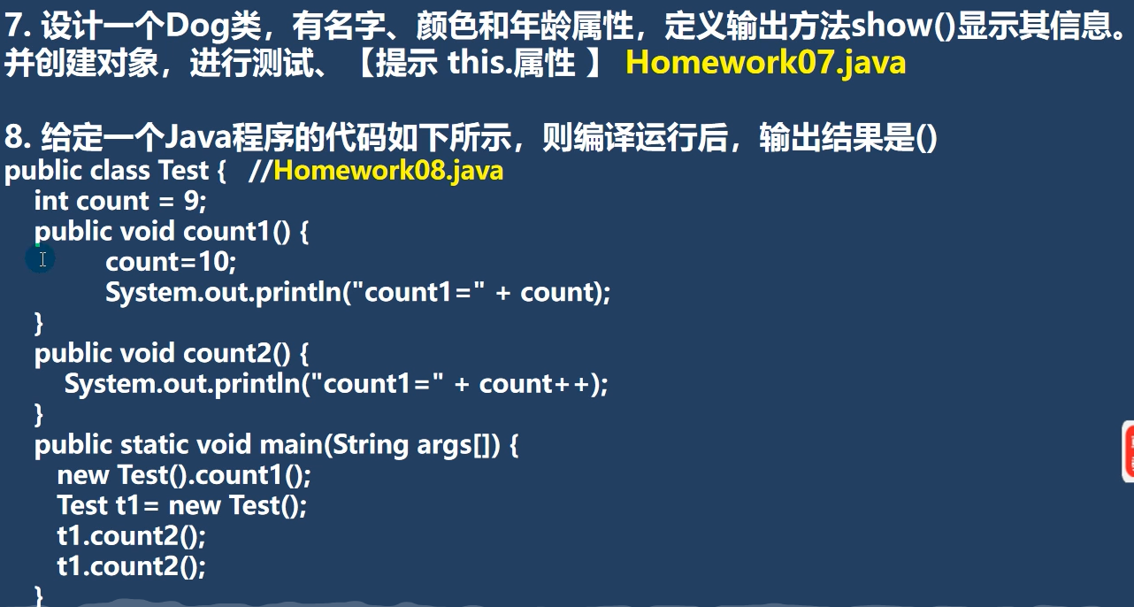 8.输出10,9,10,t1.count2(),使t1.count++了