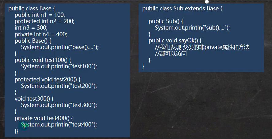 - 父类的所有属性方法,子类都继承了,不过私有的无法直接访问