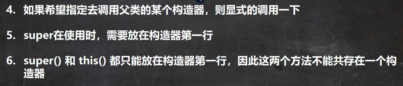 继承使用细节4:如果希望指定去调用父类的某个构造器,则显示的调用一下:super(参数列表)