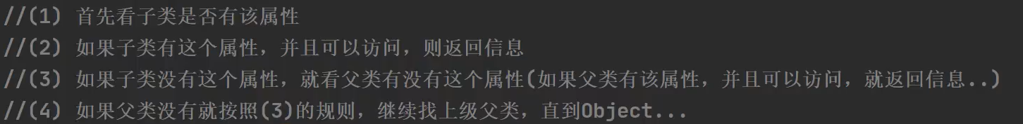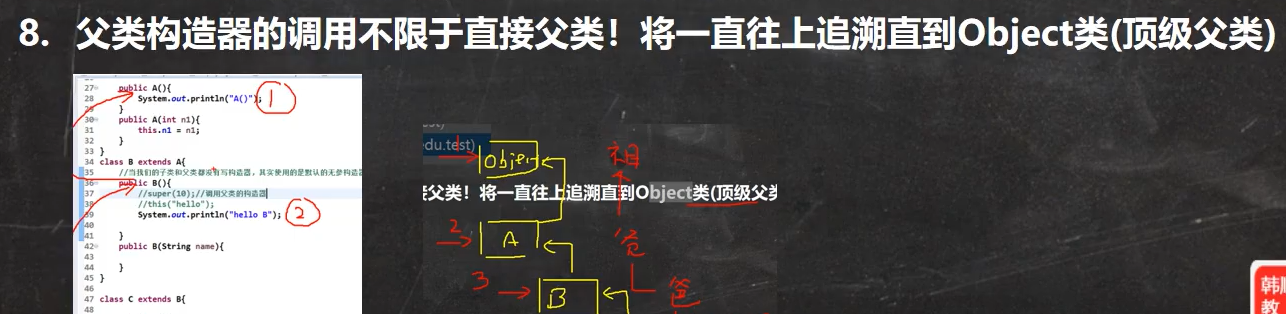 继承使用细节8:父类构造器的调用不限于直接父类,将一直往上追溯到Object类(顶级父类),所有父类的构造器都会被调用,Object的无参构造器没有输出
