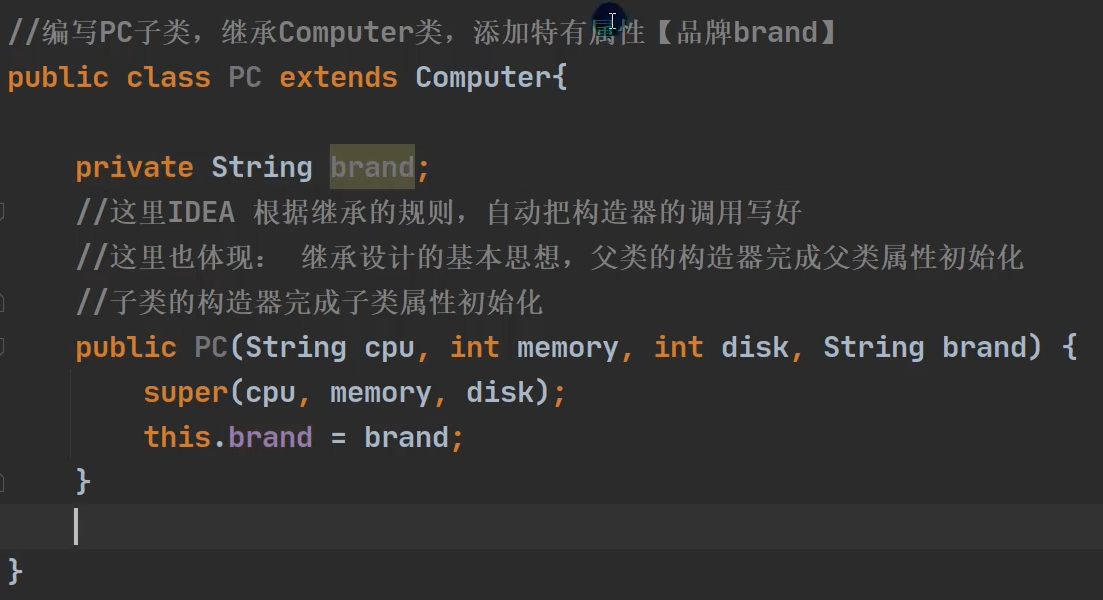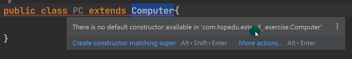 Computer类中没有默认无参构造器,子类PC继承Computer,PC的默认无参构造器,会默认调用Computer的无参构造器,因此报错