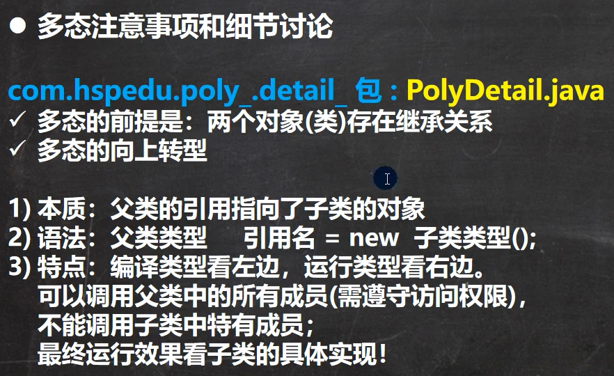 - 最终运行效果看子类的具体表现(编译通过了,从运行类型开始查找方法调用)