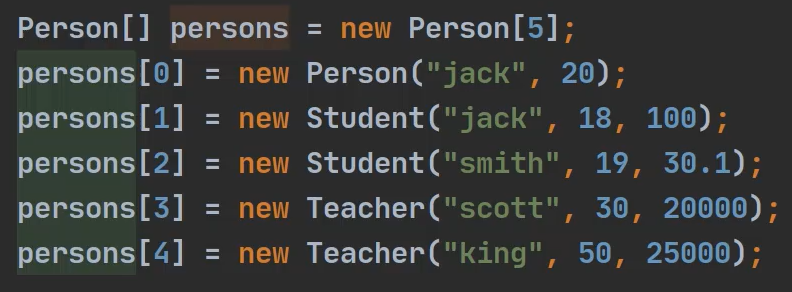 同一个数组,存放不同类型的对象(父类引用指向子类对象)