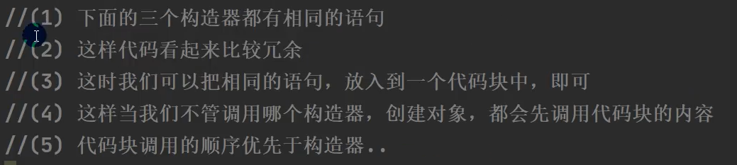 使用代码块的好处(对构造器的补充机制,提取出构造器中相同的内容,放入代码块中):