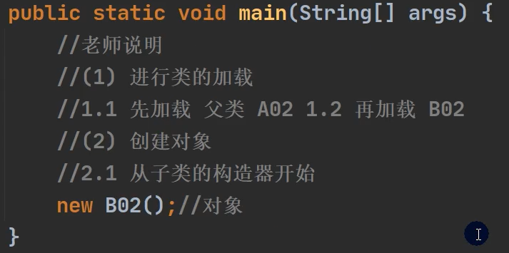 - 2.创建子类对象实例,父类也会被加载,且父类先于子类被加载(继承)