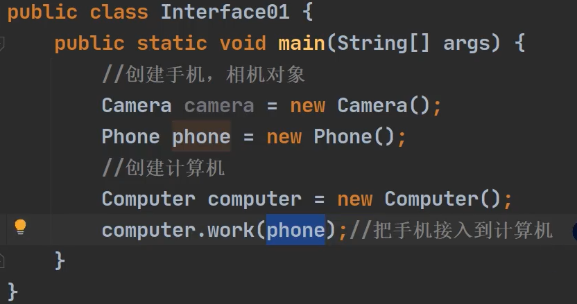 - 有实现USB接口的类Phone,Camera