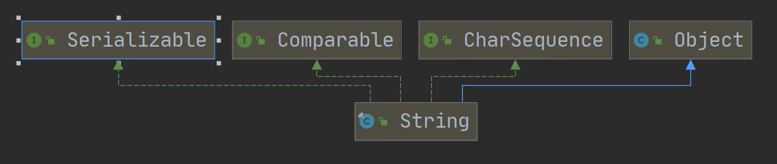 - 实现了Serializable,说明String可以串行话,用于网络传输