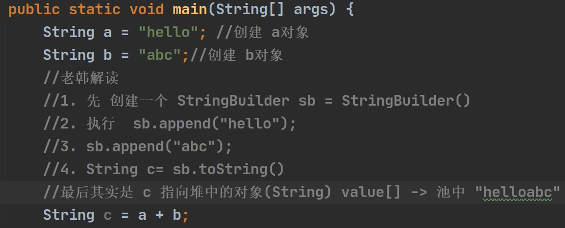 - 字符串常量相加,看的是池